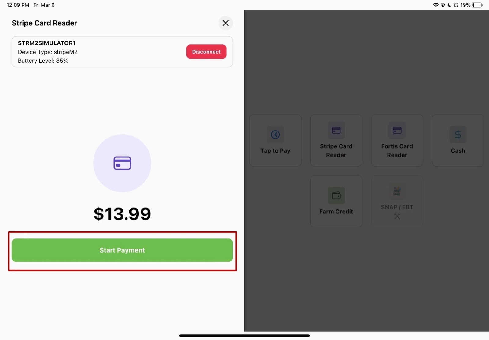 5. Press “Start Payment” if with card and your customer may proceed with card payments.