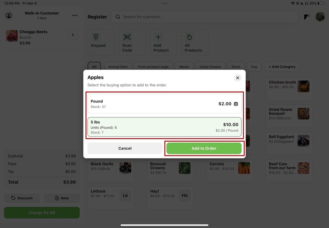Congratulations on setting up your new Register account! We designed Register to make in-person transactions at your farm stands and farmers markets faster and more seamless. To place your first order, follow the instructions below.
