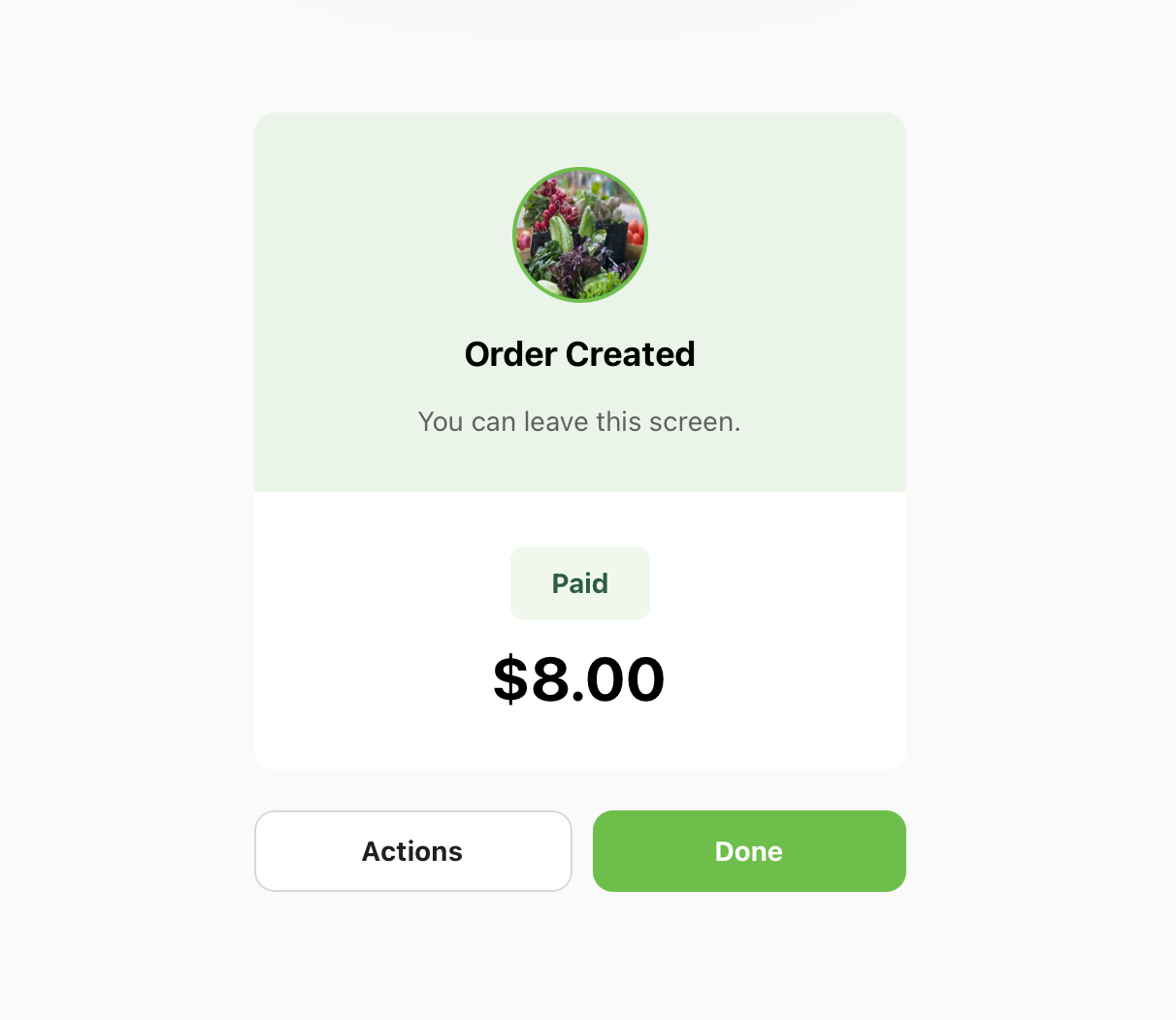 On Success Screen, click Actions