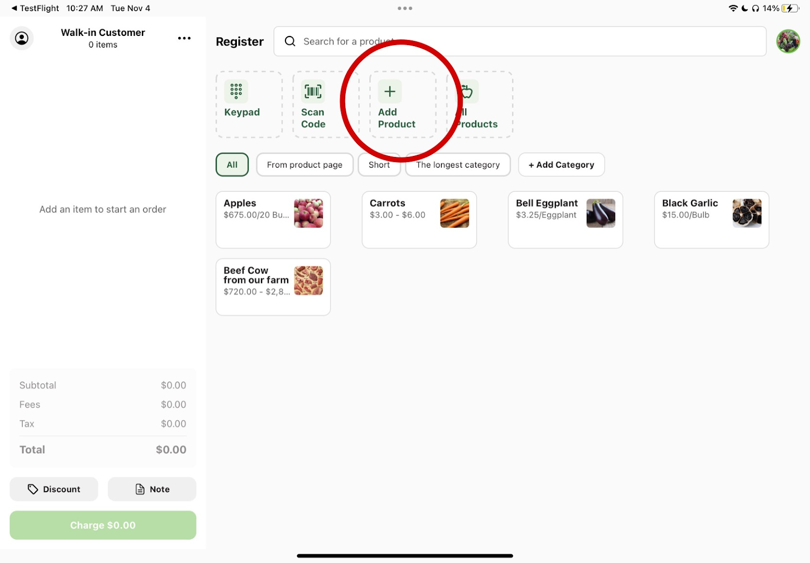 If you’re starting with a new GrownBy account or wanting to add a new product specifically to Register, you can do that straight from the Register app.