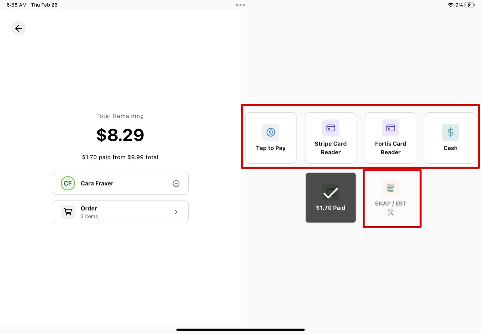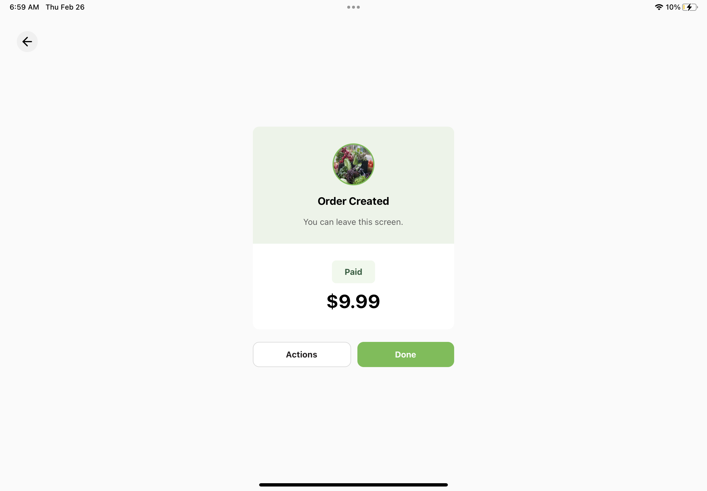 7. Once you finish the payment through the other processing systems, a success screen will pop up and the total amount of the order will appear as paid.