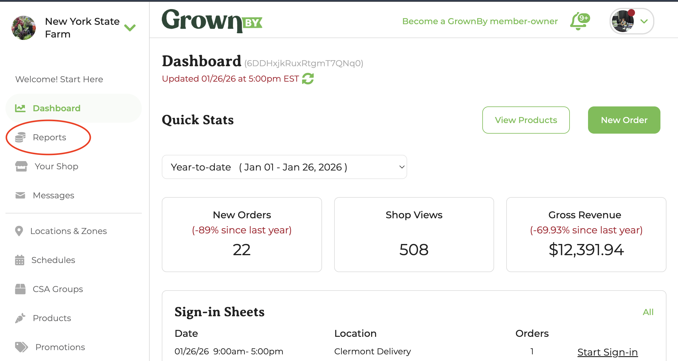 Farm credit awarded by the farmer but not purchased by the customer is not shown in this total, as it wasn’t part of a “sale.”