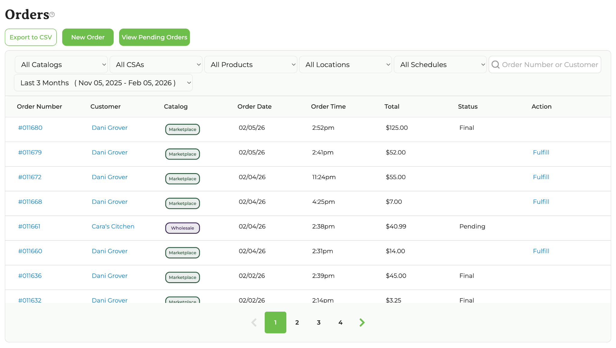 Go to your GrownBy Dashboard → Orders. Here, you can see all orders listed. Orders that say “fulfill” in the Status column are those that you haven’t dealt with yet: