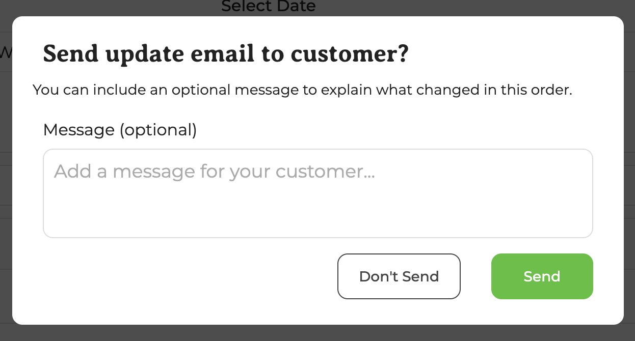 Once you’ve made all necessary edits to your products, click Save. When you click Save, you’ll be able to add an optional message to your customer: